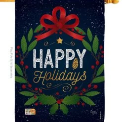 Breeze Decor Happy Holidays Wreath Winter Decorative Vertical Double Sided House Flag
