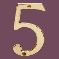 Renovators Supply Manufacturing Bright Solid Brass 3 7/8″ Address House Number ‘5’ | Renovator Supply