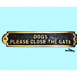 Renovators Supply Manufacturing Solid Brass Plate Dog Sign DOGS PLEASE CLOSE THE GATE Brass Plaques