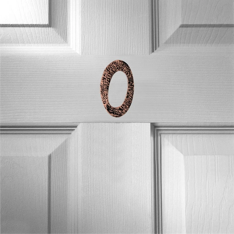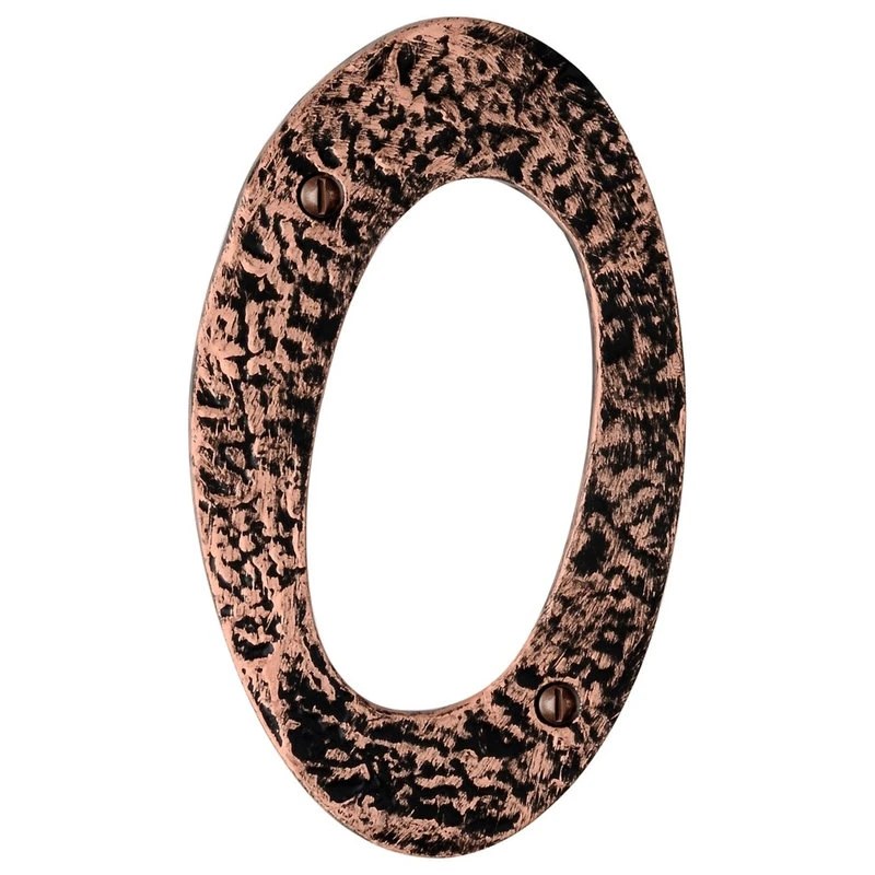 The Mascot Hardware Hammered 6 in. Antique Copper House Number 0 accentuates your address plaque or mailbox. Each house number is hand finished in a premium antique copper finish. Let this number glisten beside your home’s front door to let guests find their way. The numbers have traditional design that add a classic touch to the address plaque. The address numbers are easy to care for and can be wiped clean when dirty. This Surface Mount House Number is constructed from cast iron with durable antique copper finish and will give you decades of beauty and high performance, long lasting and durable against all weather conditions. The numbers are ideal for identifying buildings, homes, businesses, and schools. The classic design and sturdy construction lend an imperial touch to your front door. Screws are included for easy installation.