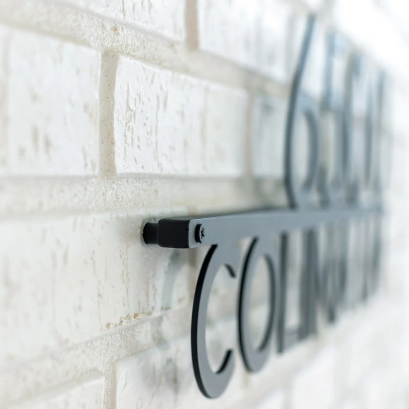 Welcome Home. This gorgeous address plaque adds flair and style to your home with modern steel house numbers and street name with a unique right justified design. Please note, the letters can spell out your street name, house name, company name or last name! We will contact you once an order is placed to confirm your address.
