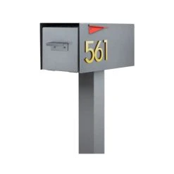 Modern Aspect Malone Post-Mounted Mailbox Optional Pole, Gray, With Numbers