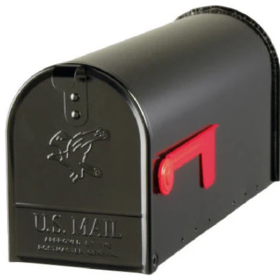 This smooth rust resistant standard size mailbox comes fully assembled with a steel latch and aluminum flag. The door is embossed with the U.S. Flag and Mail and is approved by the postal service.